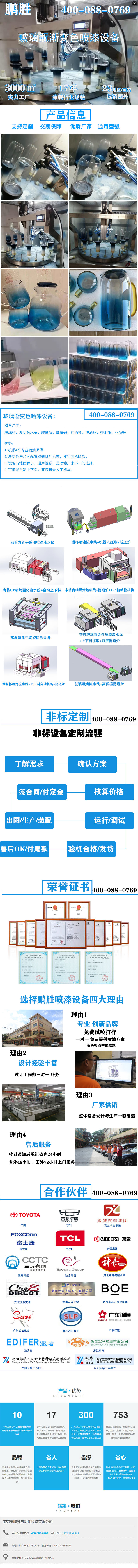 玻璃渐变色喷漆设备:适合产品:玻璃杯、渐变色水壶、玻璃瓶、玻璃碗、红酒杯、洋酒杯、香水瓶、花瓶等优势:1.机顶4个专业喷油师傅。2.渐变色产品可配置双套供油系统,双组喷枪喷涂。3.设备占地面积小,通用性强,是喷漆厂家不二的选择。4.可搭配自动上下料,直接省去人工成本。