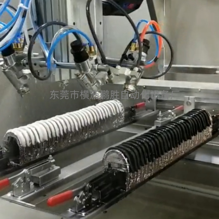 灯头底座摆盘往复喷漆机:适合产品:灯头底座、门把手、塑胶平面件、平面木盒、木盖、五金平面件等喷油!优势:1.设备可单个喷涂或者摆盘喷涂。2.6轴联动,动作灵活360度无死角喷涂。...