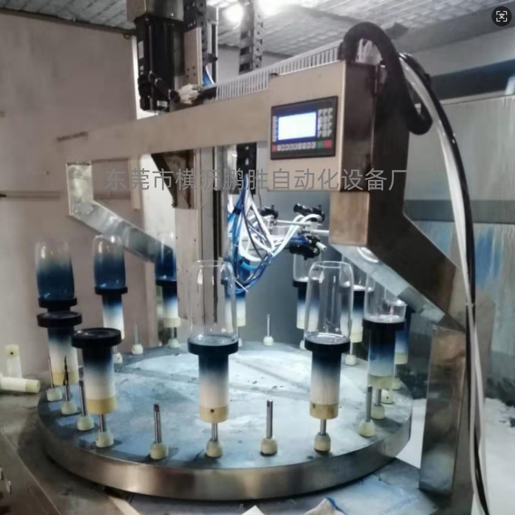 玻璃渐变色喷漆设备:适合产品:玻璃杯、渐变色水壶、玻璃瓶、玻璃碗、红酒杯、洋酒杯、香水瓶、花瓶等优势:1.机顶4个专业喷油师傅。2.渐变色产品可配置双套供油系统,双组喷枪喷涂...