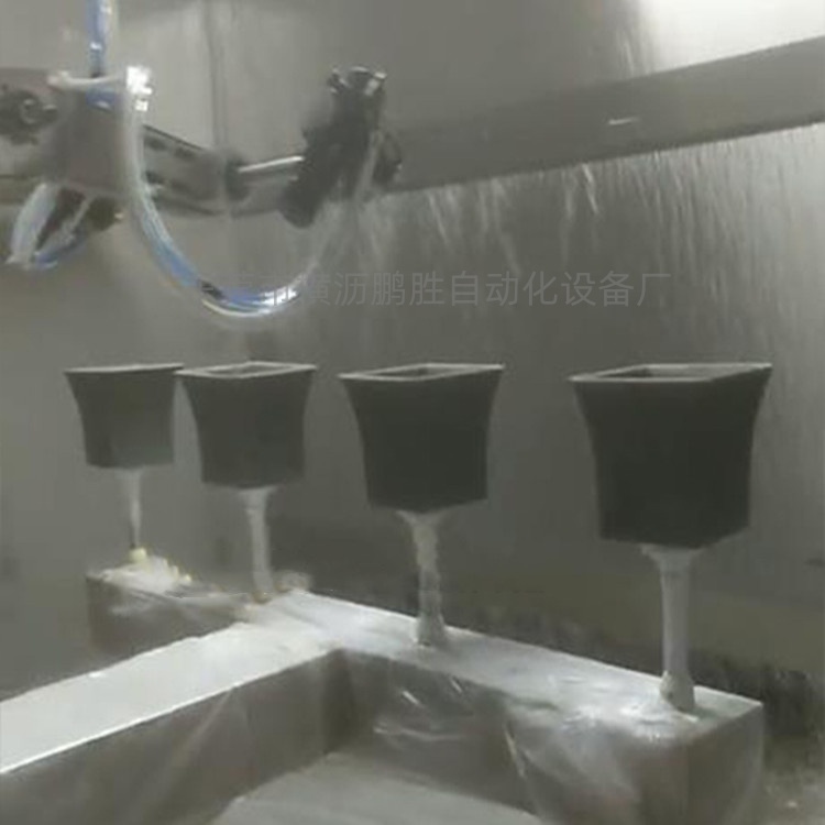 4枪6轴智能型喷漆机:适合产品:树脂工艺品、PP塑料树脂捧在、塑胶花盆、陶瓷花盆、水泥花盆、复古花盆等!优势:1.1机顶4个专业喷油师傅2.自带吸盘功能、平底产品直接省去工装夹...