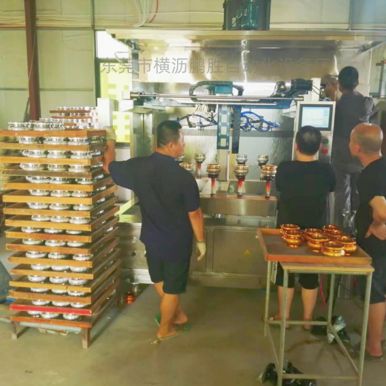 4枪6轴智能喷漆机适用产品:电饭锅、不锈钢锅具、圆形锅具、电压力锅、特佛龙锅具、搪瓷锅具、珐琅锅、铸铁锅等产品!优势:1.拥有定枪环形线,往复机,机器人以及人工喷漆的思维逻...