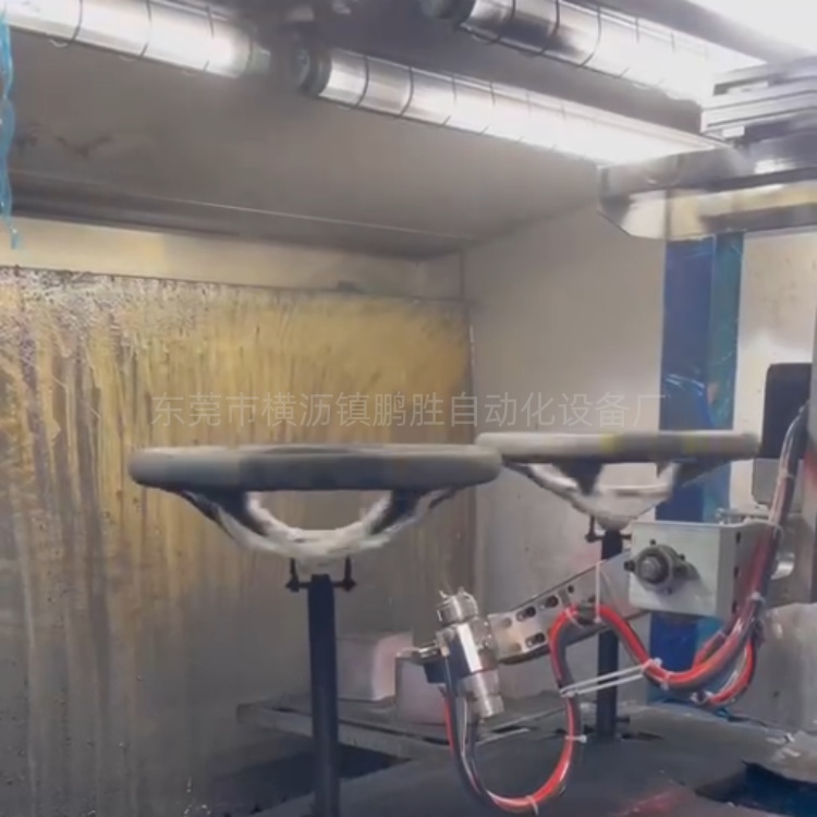 汽车方向盘喷漆设备:适合产品:小汽车方向盘、货车方向盘、动车方向盘、儿童玩具车方向盘等内外壁喷涂!优势:1.2枪6轴+隧道烤炉,产品通用性强。2.动作灵活,360度无死角内外壁...