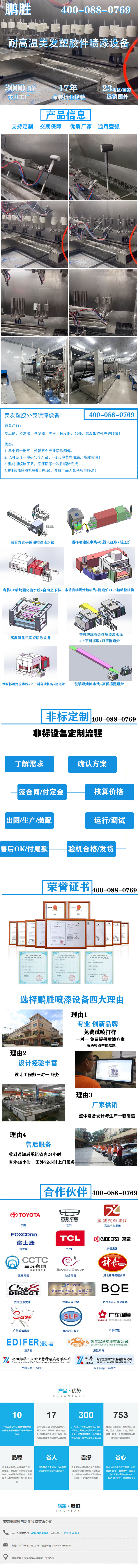 美发塑胶外壳喷漆设备:|适合产品:吹风筒、拉发器、卷发棒、夹板、拉发器、铝条、高温塑胶外壳等喷漆!优势:1.单个喷一出五,代替五个专业喷涂师傅。2.也可设计一串6-10个产品,一组5串节省油漆,高效喷涂!3.湿对湿喷涂工艺,底漆面漆一次性喷涂完成!4.8轴智能喷漆机搭配地柜线,异形产品无死角智能喷涂!