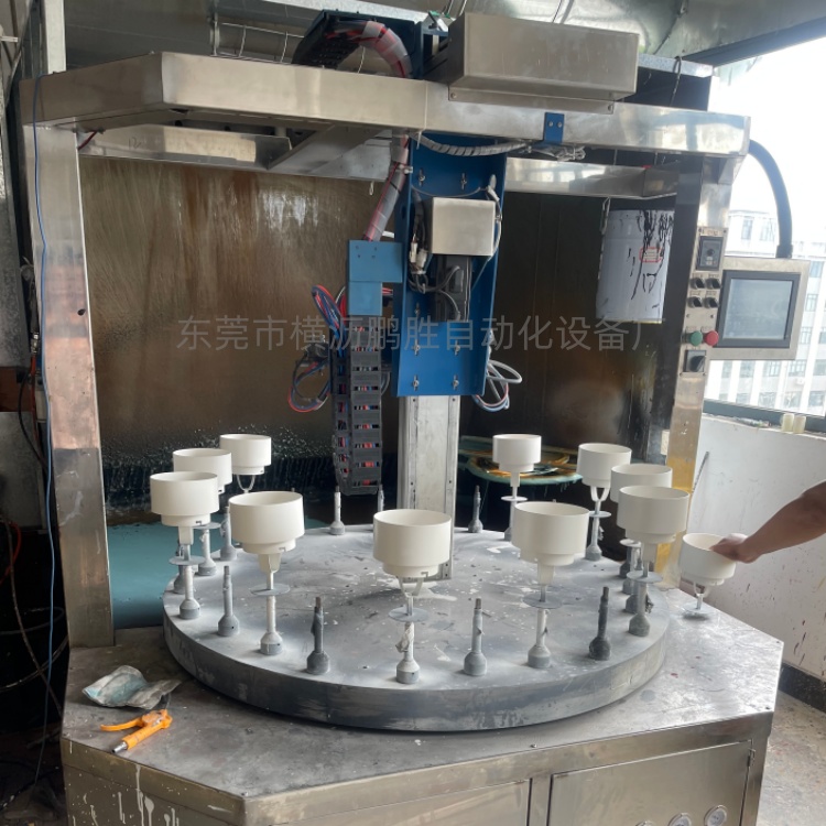 6轴转盘喷釉设备:适合产品:陶瓷酒瓶、陶瓷花盆、陶瓷茶杯、陶瓷餐具、陶瓷水杯、陶瓷环、搪瓷锅具、搪瓷锅具、搪瓷壶喷釉设备!优势:1.集定枪环形线能喷中小件产品通用性大...