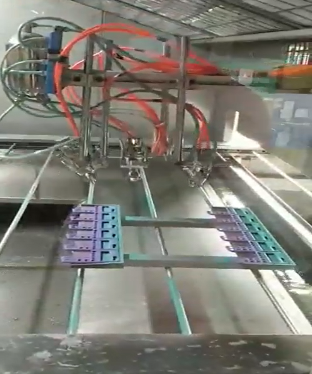 8枪2轴在线往复喷涂适用产品:计算器外壳喷漆设备.塑胶渐变色.多色键盘.机型键盘.笔记本外壳.计算机按键.键盘按键等喷涂,一机顶5-10个喷漆枪手,高效喷涂,渐变色可配置两套供油...