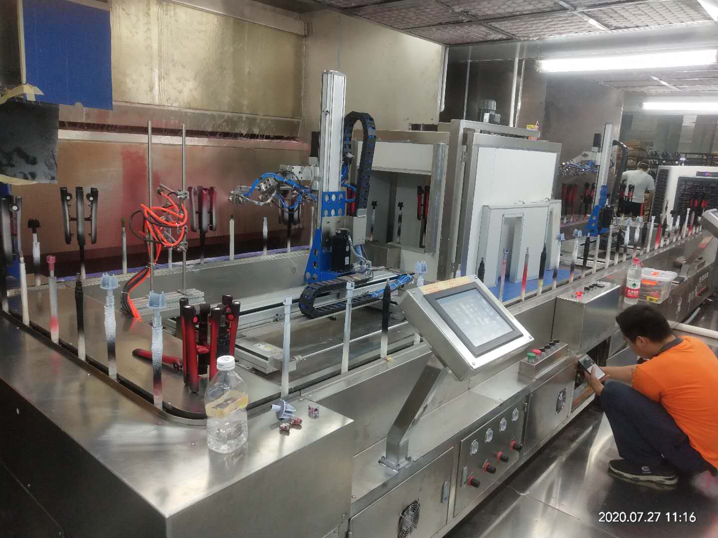 鹏胜拉发器案例,设计一串6个,三轴联动在线喷涂,2喷2烤一体线!...