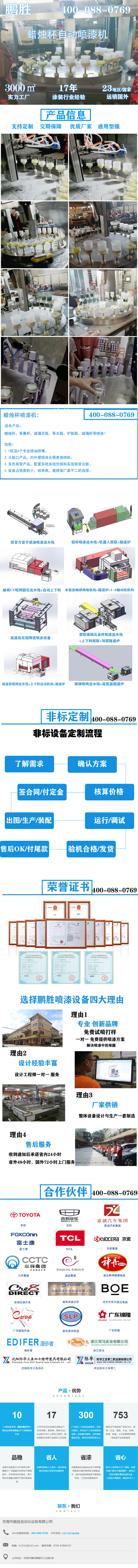 蜡烛杯喷漆机:适合产品:蜡烛杯、香薰杯、玻璃花瓶、香水瓶、护肤瓶、玻璃杯等喷涂!优势:1.1机顶4个专业喷油师傅。2.大瓶口产品,内外壁喷涂无需更换喷枪。3.多色渐变产品,配置多枪多组份供料实现渐变功能。4.设备占地面积小,效率高,是喷漆厂家不二的选择。