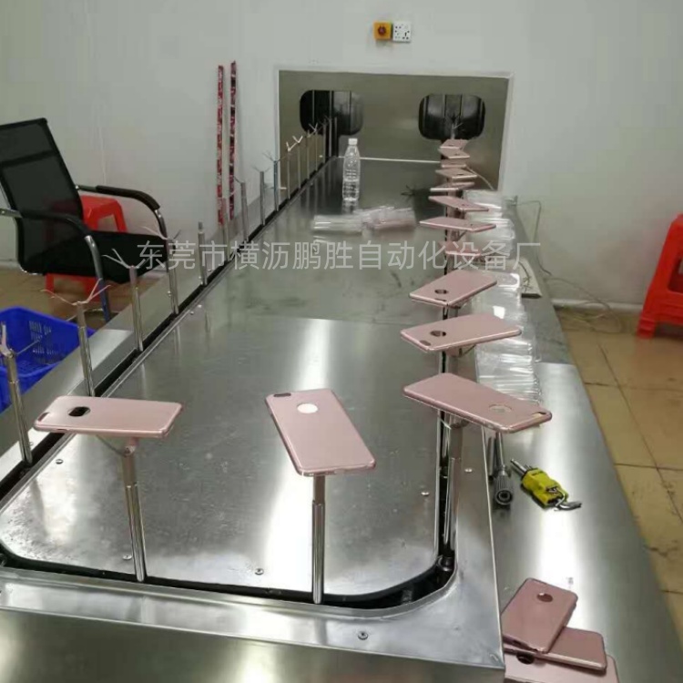 手机壳自动喷漆生产线:适合产品:手机壳、手机支架、手机框、电子秤外壳、计算器外壳、控制面板屏幕等喷涂!优势:1.非标定制1喷1烤,2喷2烤,3喷3烤,等喷烤一体流水线。2.产品节距可...