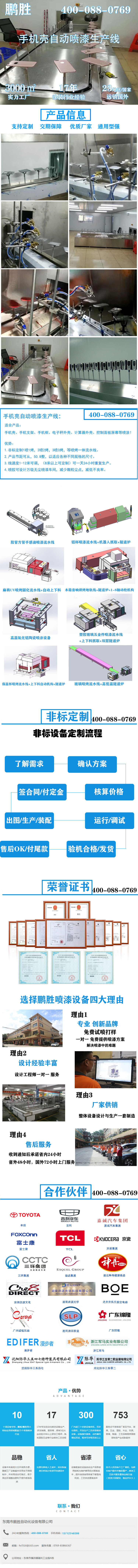 手机壳自动喷漆生产线:适合产品:手机壳、手机支架、手机框、电子秤外壳、计算器外壳、控制面板屏幕等喷涂!优势:1.非标定制1喷1烤,2喷2烤,3喷3烤,等喷烤一体流水线。2.产品节距可从,50.8整,以适应各种不同规格的尺寸。3.线速度1-12米可调,(8米以上可定制)可一天24小时重复生产。4.喷胶可设计万级无尘喷漆车间,减少颗粒尘点,减低不良率。