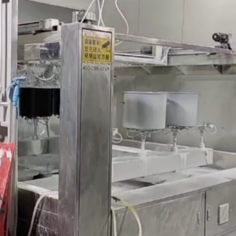 珐琅锅自动喷釉设备:适合产品:搪瓷锅、珐琅锅、铸铁锅、煎锅、炒锅、搪瓷烤盘、搪瓷炉架等喷釉!优势:1.拥有传统定枪环形线、传统往复机、传统机器人以及人工喷涂的思维逻辑。2...
