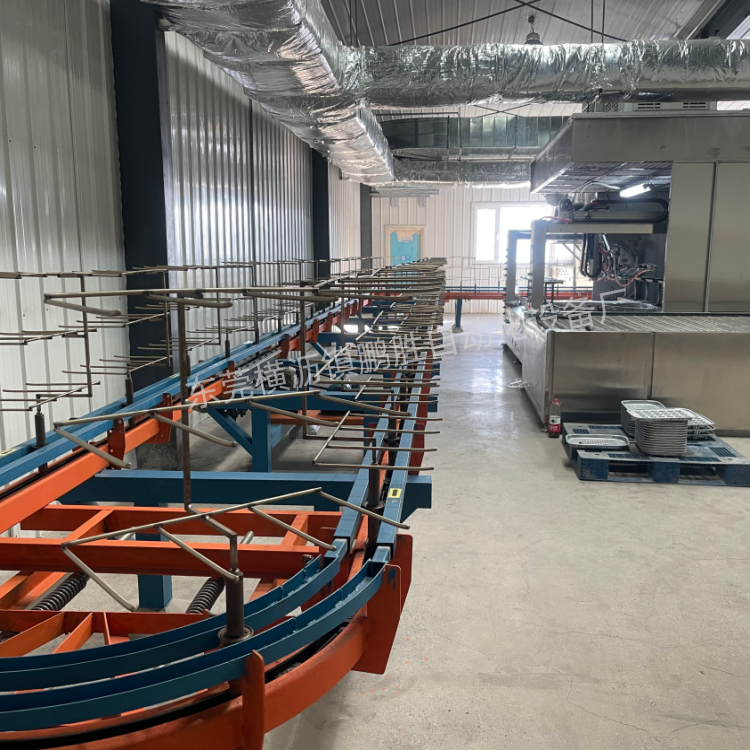 烤盘2涂2烤自动生产线:适合产品:搪瓷烤盘、特氟龙烤盘、烧烤架、炉架、灶台架、搪瓷锅具等喷涂!优势:1.配置2套6轴五位全自动喷涂机2机顶10个专业喷涂师傅。2.动作灵活,360度无死角...