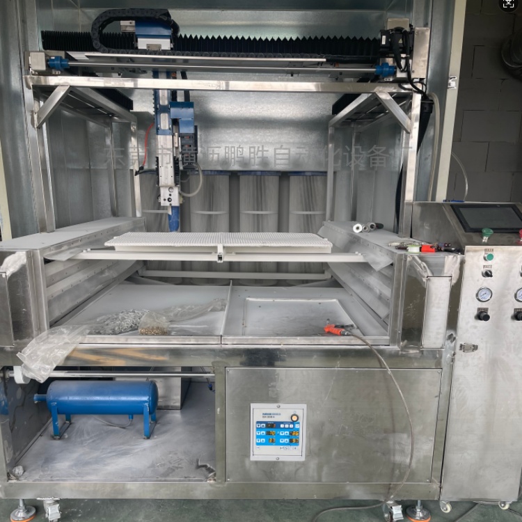 金小配件喷漆设备:适合产品:运动鞋扣、衣服扣、裤子扣、帽子扣、钥匙扣、挂件等喷漆!优势:1.设计网板挂件竖立式喷涂,正反两面自动翻转全方位喷涂。2.大件产品可1出4同时喷涂,异...
