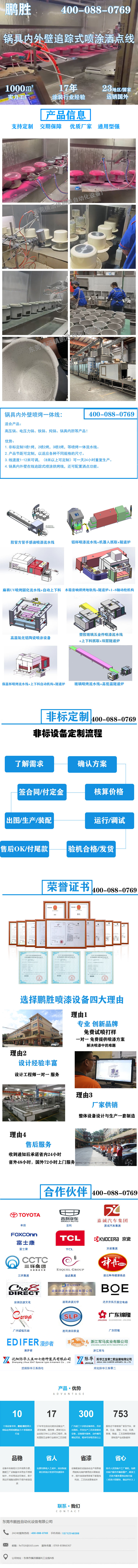 锅具内外壁喷烤一体线:适合产品:高压锅、电压力锅、铁锅、炖锅、锅具内胆等产品!优势:1.非标定制1喷1烤,2喷2烤,3喷3烤,等喷烤一体流水线。2.产品节距可定制,以适应各种不同规格的尺寸。3.线速度1-12米可调,(8米以上可定制)可一天24小时重复生产。4.锅具内外壁在线追踪式喷涂烘烤线,还可配置洒点功能。